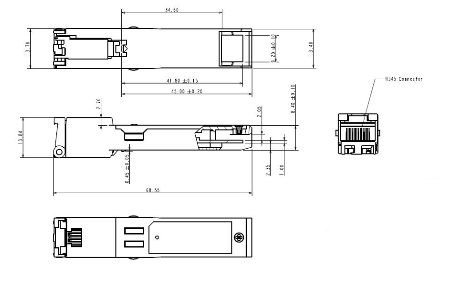 SFP-GE-T千兆电口模块(RJ45),使用于交换机等网络设备SFP千兆光纤接口,转换成为千兆RJ45以太网口